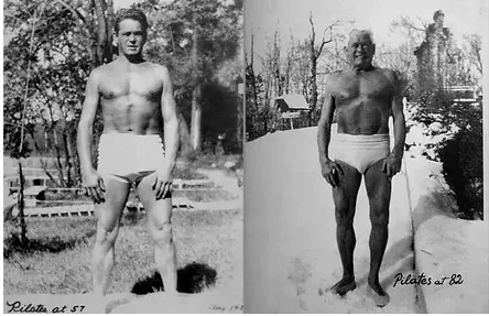 Pour comprendre le Pilates, il faut comprendre l’homme. Joseph Pilates n’a pas le sous, mais il a faim, de l’ambition et des idées plein la tête. Né dans une famille Allemande modeste, et dans une époque rude où la misère impacte les conditions de santé des moins chanceux, il est un petit garçon chétif qui rêve d’un autre corps que le sien. Son père, passionné de culture physique, l’expose donc au goût de l’effort physique et de ses vertus. Cette époque est celle où naissent le Culturisme et ses modèles de corps “grecs” parfaits. Joseph s’appliquera donc pendant prés de 20 ans, à mûrir et affiner sa méthode, faisant de son propre corps le meilleur outil d’expérimentation et également de promotion.